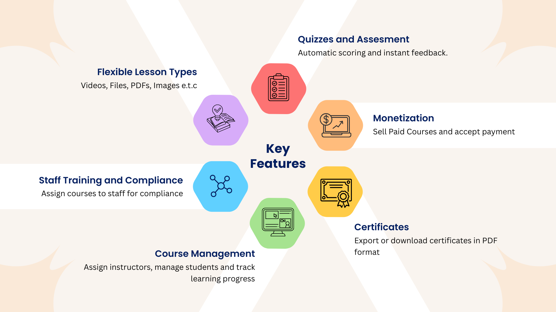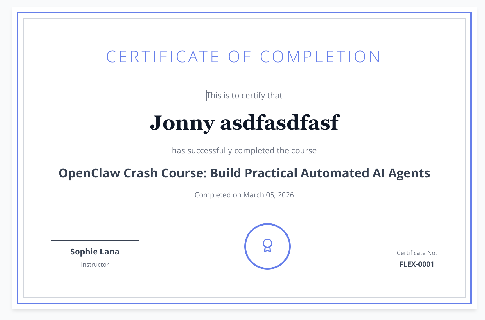 - Automatically generate customizable certificates after course completion.
