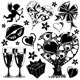 Black silhouettes of various kinds of birds. A vector illustration