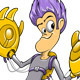 Vector illustration of a coal miner carrying pick ax and lamp done in retro style.
