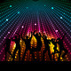 Vector illustration of a film lighting crew holding a spotlight done in retro style.