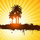 Asian Pagoda silhouette at Dusk with sun behind and fog around