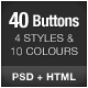 Set contains 24 buttons in PSD vector format. Fully and easily editable – just shape and text layers, without layer masks and raster layers. Museo Sans 500 font used, to download [for free] from: http://new.myfonts.com/fonts/exljbris/museo-sans/500/