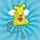 cartoon illustration of Santa and reindeer bring present at Christmas