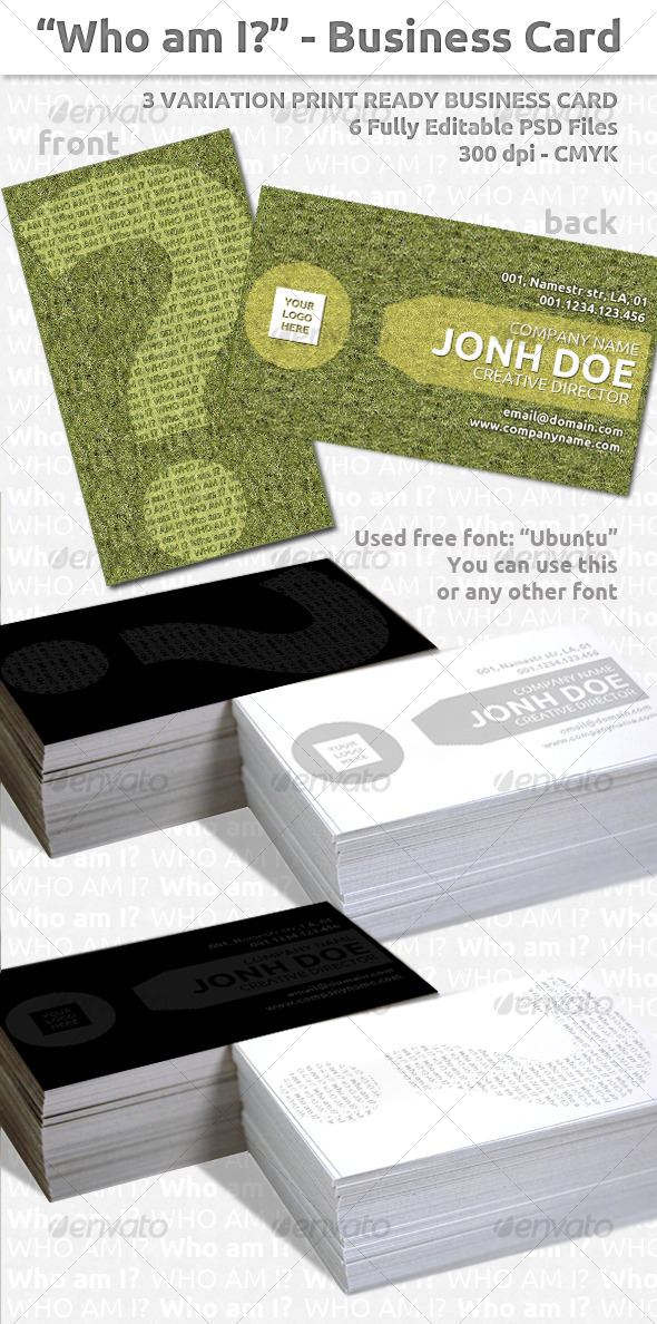“who am I?” part on front of business card isn’t editable. (But on front of business card with white background you can easy change the grey color).